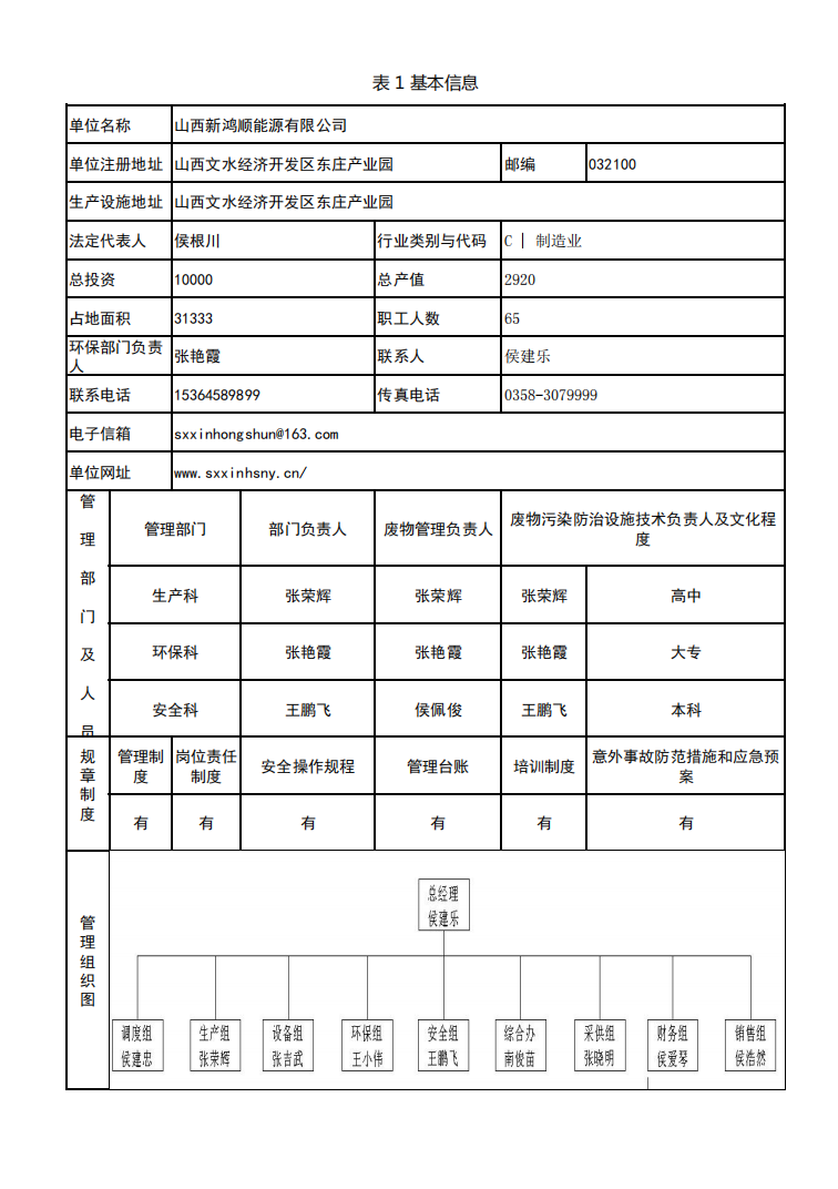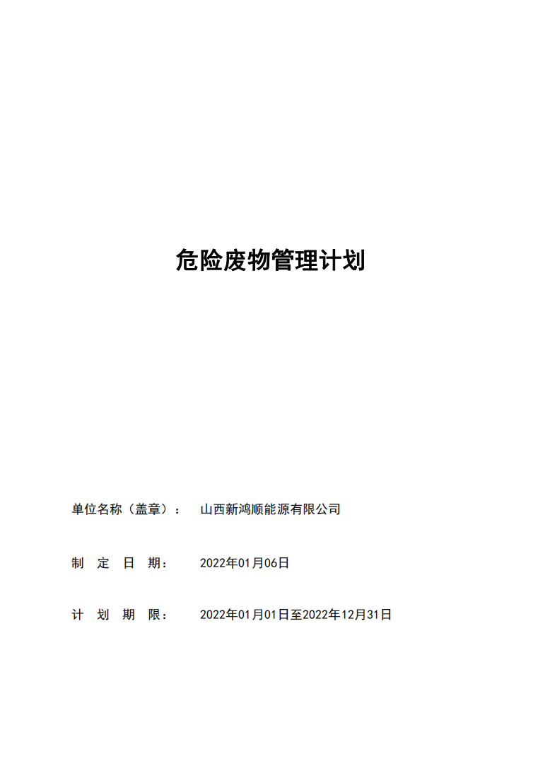 山西新鴻順能源有限公司2022年管理計劃